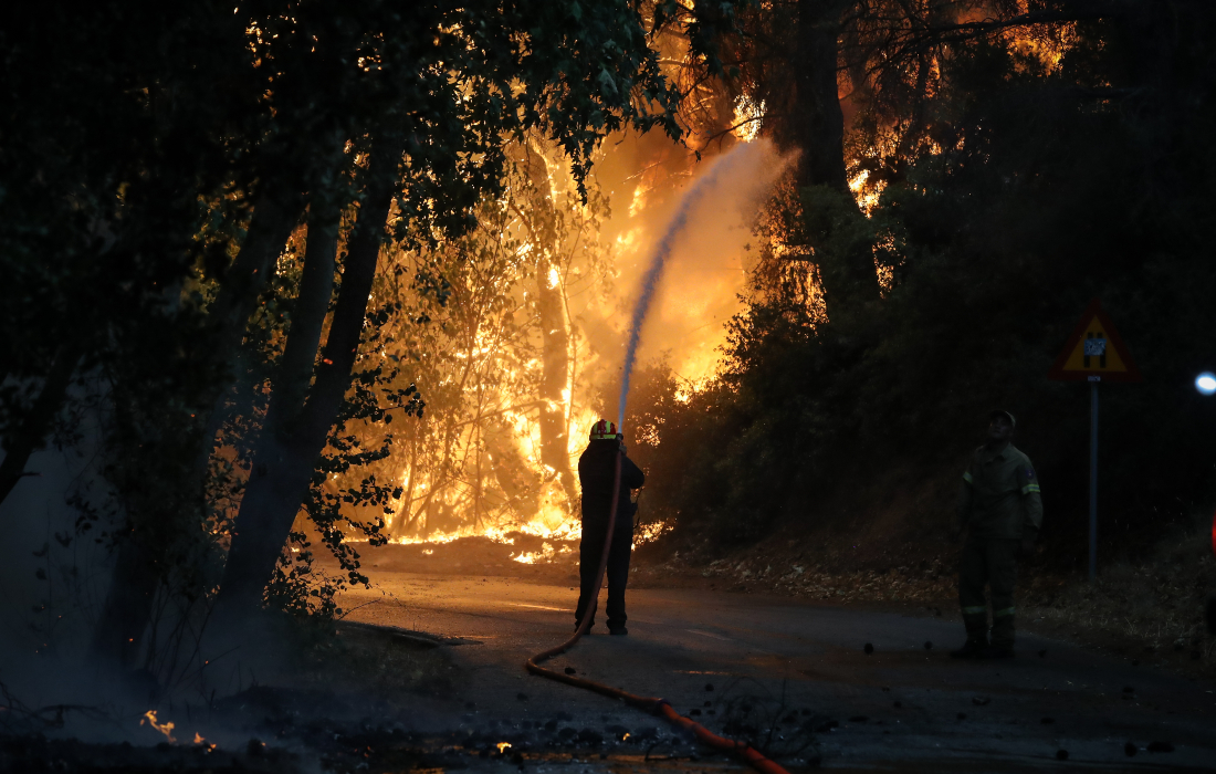 Η φωτιά καίει σε δύσβατο σημείο ενώ λόγω ώρας δεν πετάνε εναέρια μέσα
