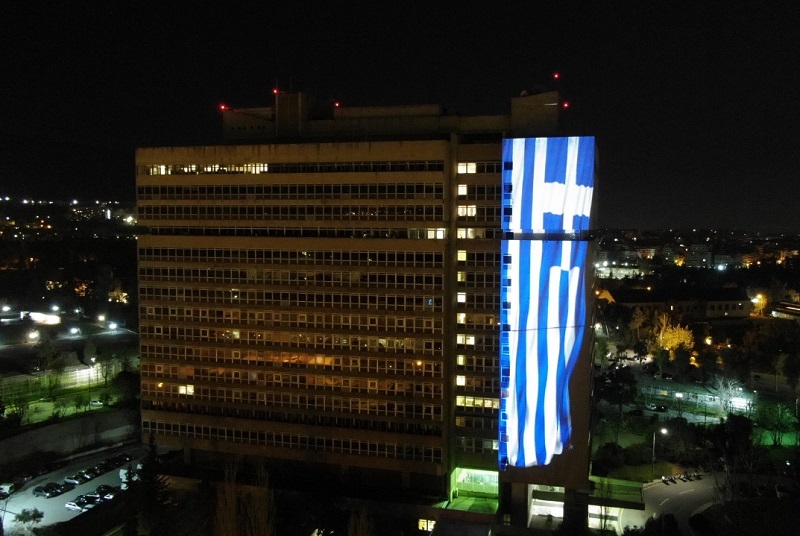 Μια τεράστια γαλανόλευκη φωτίζει από χθες το βράδυ το κτίριο της Κατεχάκη. Ο υπουργός Προστασίας του Πολίτη Τάκης ανήρτησε μια φωτογραφία στα social media με την ακόλουθη αναφορά: «Σήμερα γιορτάζει το έθνος των Ελλήνων! Έχουμε διπλή εορτή! Τιμούμε την Θεοτόκο και τους ήρωες της Επανάστασης του 1821. Η πίστη στον αγώνα, η αγάπη για την ελευθερία και την ανεξαρτησία νίκησαν την αδιαμφισβήτητη υπεροπλία της οθωμανικής αυτοκρατορίας. Όταν οι Έλληνες ενώνουν τις δυνάμεις τους πετυχαίνουν εκείνο που μοιάζει αδύνατο! Ας το θυμόμαστε πάντα. Χρόνια πολλά σε όλες τις Ελληνίδες και τους Έλληνες!»