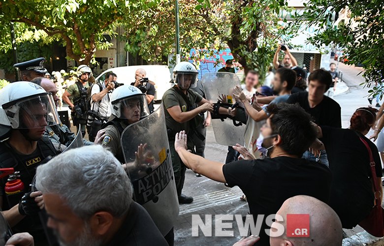 «Η πλατεία χρειάζεται Ζωή, Ελευθερία, Δημιουργία, όχι σταθμό Μετρό» αναφέρεται σε πανό που κρατούν οι πολίτες που συμμετέχουν στην κινητοποίηση, ενώ πριν λίγη ώρα υπήρξε ένταση ανάμεσα σε πολίτες και ΜΑΤ.