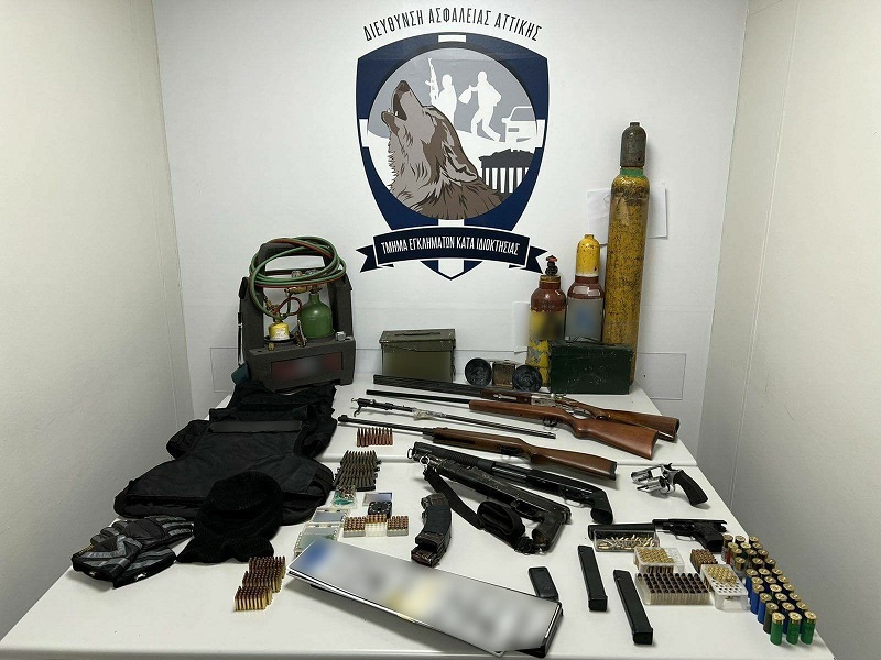 Η ΕΛΑΣ πραγματοποίησε οκτώ έρευνες σε οικίες και αποθηκευτικούς χώρους, στις οποίες μεταξύ άλλων, βρέθηκαν και κατασχέθηκαν, το χρηματικό ποσό των 231.400 ευρώ, δύο πολεμικά τυφέκια τύπου καλάσνικοφ, έξι πιστόλια, δύο περίστροφα, δύο καραμπίνες και αεροβόλα όπλα, πλήθος φυσιγγίων, πυροκροτητές, εκρηκτικές ύλες και αυτοσχέδιοι εκρηκτικοί μηχανισμοί, κυνηγετικά μαχαίρια, αλεξίσφαιρα, χρονόμετρα, φορητοί ασύρματοι, διαρρηκτικά εργαλεία, πλαστές πινακίδες κυκλοφορίας, πλήθος ηλεκτρονικών συσκευών και κινητών τηλεφώνων, τρία αυτοκίνητα και μια μοτοσικλέτα.