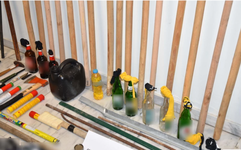 -Αυτοσχέδιοι εμπρηστικοί μηχανισμοί (μολότοφ), μπιτόνια με βενζίνη και γυάλινες φιάλες,