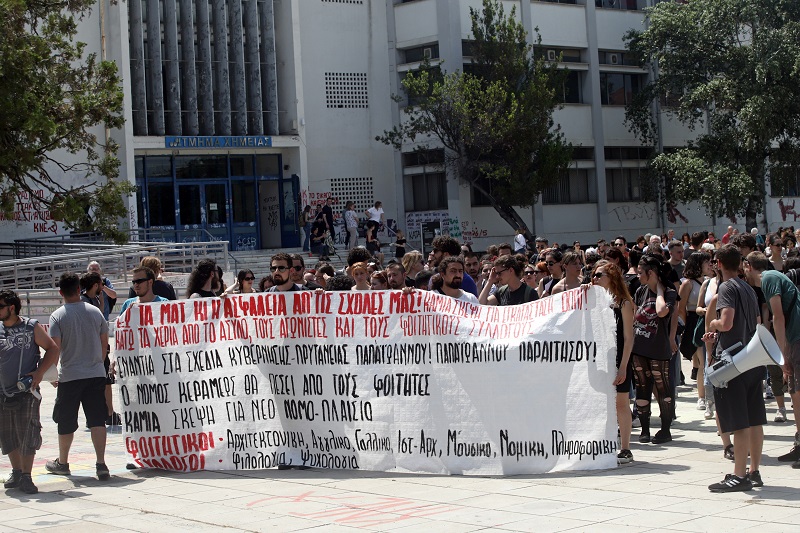 Συγκέντρωση διαμαρτυρίας πραγματοποίησαν σήμερα μέλη φοιτητικών παρατάξεων στο ΑΠΘ που ζητούν την αποχώρηση των αστυνομικών δυνάμεων από τον χώρο του Πανεπιστημίου.