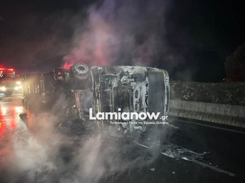 Τροχαίο δυστύχημα σημειώθηκε λίγο μετά τα μεσάνυχτα της Μεγάλης Πέμπτης στο 140,5 χλμ. της εθνικής οδού Αθηνών–Λαμίας στο ρεύμα προς Λαμία, όταν νταλίκα εξετράπη της πορείας της και ανεφλέγη, με τραγική κατάληξη τον θάνατο του 63χρονου οδηγού, Βουλγαρικής καταγωγής, ο οποίος σύμφωνα με τα πρώτα στοιχεία, τραυματίστηκε και φέρεται να έχασε την ζωή του από την εκτροπή και όχι από τη φωτιά.