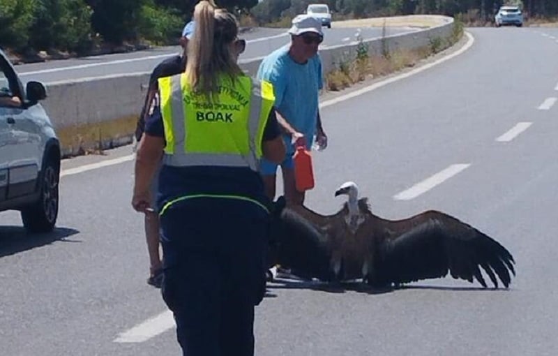Όπως αναφέρει η ΕΡΤ Ηρακλείου, ένας γυπαετός ζαλισμένος πιθανόν από τις πολύ υψηλές θερμοκρασίες, προσγειώθηκε στη μέση του δρόμου, αδυνατώντας να πετάξει. Διερχόμενοι οδηγοί σταμάτησαν, τον προστάτεψαν, καθώς βρισκόταν σε ημιλιπόθυμη κατάσταση, του έκαναν σκιά, του έδωσαν νερό να πιεί, ενώ του έριξαν νερό και στο κεφάλι.
