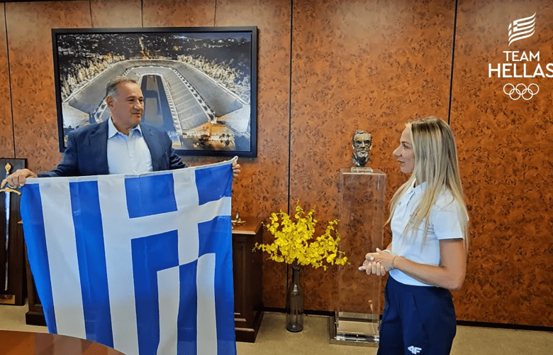 Ο πρόεδρος της Ελληνικής Ολυμπιακής Επιτροπής, Σπύρος Καπράλος, παρέδωσε την ελληνική σημαία στην Αντιγόνη Ντρισμπιώτη, η οποία μαζί με τον Γιάννη Αντετοκούνμπο θα είναι οι σημαιοφόροι της Ελλάδας στην Τελετή Έναρξης των Ολυμπιακών Αγώνων Παρίσι 2024.