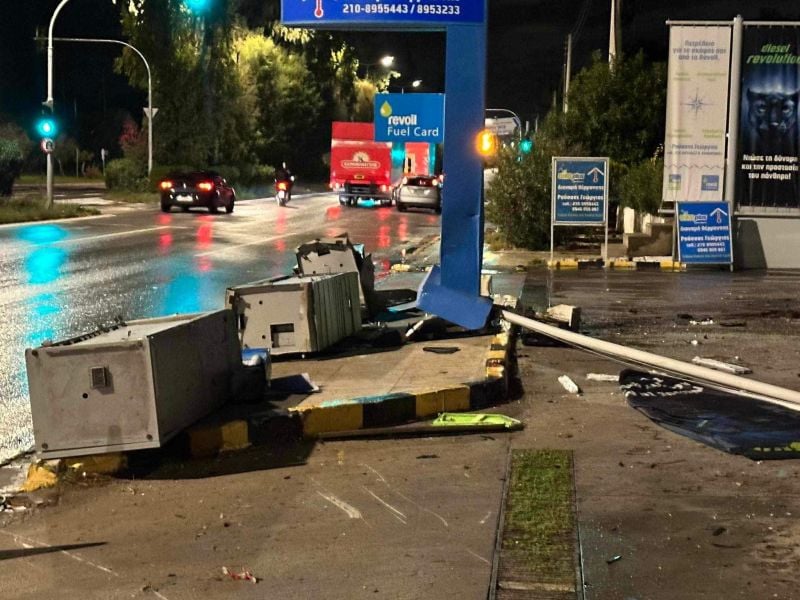 Η εικόνα από το πρατήριο υγρών καυσίμων, θυμίζει κυριολεκτικά… βομβαρδισμένο τοπίο, με την ιδιοκτήτη της επιχείρησης να μην μπορεί να πιστέψει τη ζημιά που υπέστη.