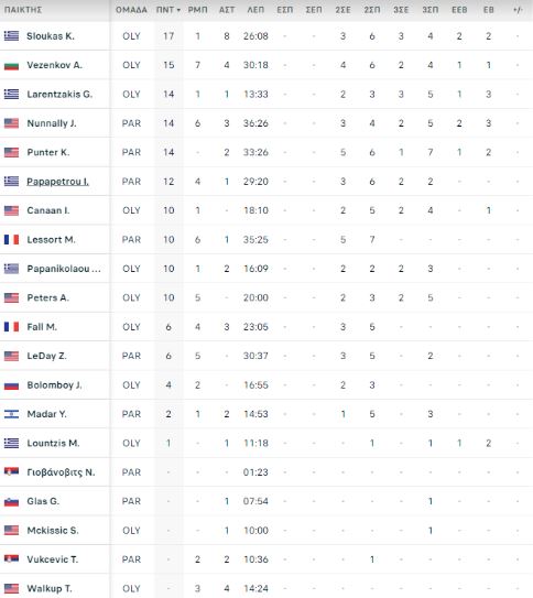 Ο Ιωάννης Παπαπέτρου ακόμη πρόσφερε λύσεις στο αμυντικό κομμάτι,αλλά με τον Σάσα Βεζένκοφ και ομαδική δουλειά οι Πειραιώτες 15 δευτερόλεπτα πριν την λήξη του ημιχρόνου ήταν μπροστά με 11 πόντους(45-34).