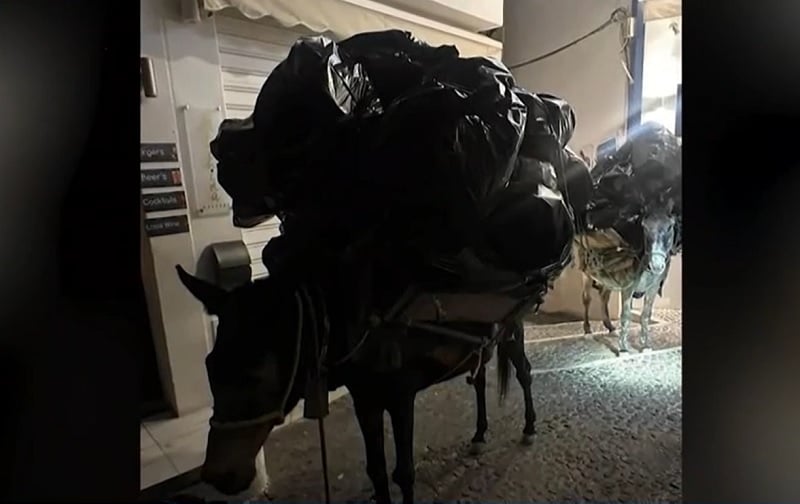 Το τετράποδο δεν άντεξε το τεράστιο βάρος με σακούλες σκουπιδιών που το είχαν φορτώσει
