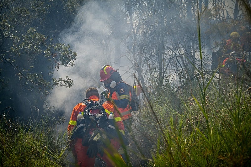 Στο σημείο παραμένουν και επιχειρούν 22 πυροσβέστες με έξι οχήματα και ένα πεζοπόρο τμήμα