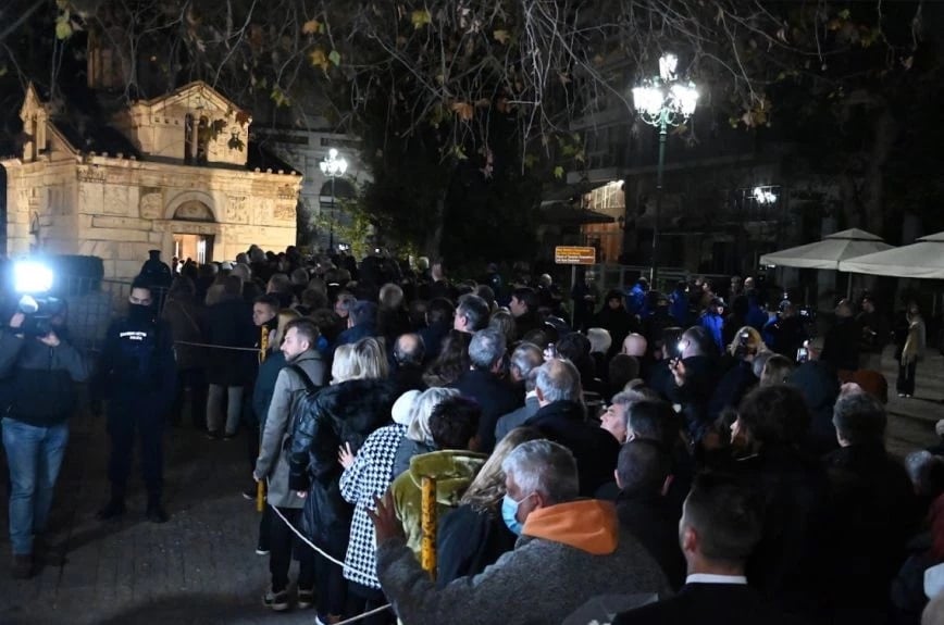 Η σορός του τέως βασιλιά Κωνσταντίνου ξεκίνησε από το Α’ Νεκροταφείο λίγο μετά τις 05:00 και έφθασε στις 5:45 στο παρεκκλήσι του Αγίου Ελευθερίου δίπλα στον Μητροπολιτικό Ναό, όπου η πρόσβαση είναι ελεύθερη έως τις 10.30 για όποιον επιθυμεί να αποτίσει φόρο τιμής.