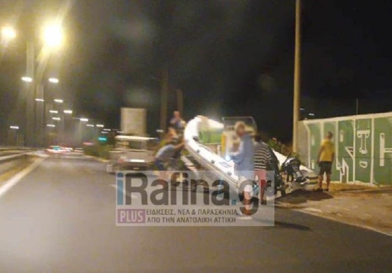 Το φουσκωτό σκάφος το οποίο έμεινε στη μέση του δρόμου στο ύψος του Προβάλινθου, προκάλεσε αναστάτωση, αφού ο φόβος να προκληθεί τροχαίο ήταν ορατός. Όπως κατέγραψε ο φωτογραφικός φακός του irafina.gr, το τρέιλερ που μετέφερε το φουσκωτό σκάφος ακινητοποιήθηκε στην δεξιά λωρίδα στο ρεύμα προς Ραφήνα.