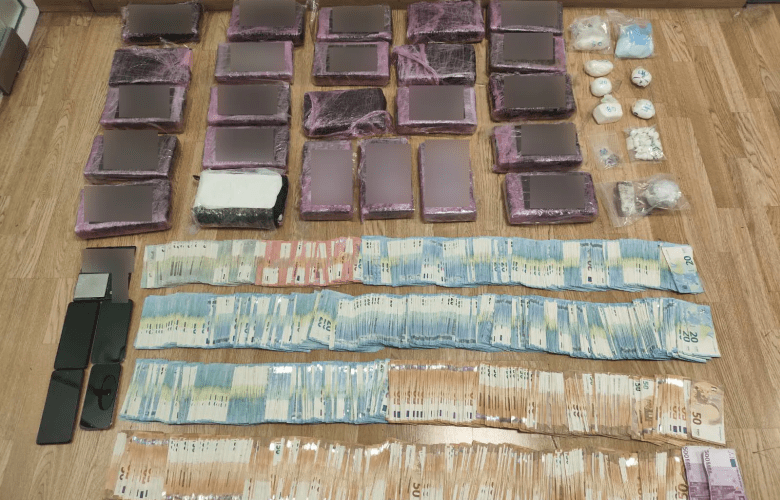 Ακολούθησαν έρευνες σε καφετέρια ιδιοκτησίας του 29χρονου, στην οικία του 21χρονου, καθώς και σε οικία που χρησιμοποιούνταν ως χώρος αποθήκευσης ναρκωτικών ουσιών (καβάτζα), όπου ο 29χρονος και ο 21χρονος κατείχαν από κοινού, με σκοπό τη διακίνηση, κοκαΐνη μικτού βάρους 26 κιλών και 228 γραμμαρίων, κατεργασμένη κάνναβη (σοκολάτα) μικτού βάρους 80,9 γραμμαρίων και ακατέργαστη κάνναβη μικτού βάρους 40,9 γραμμαρίων.