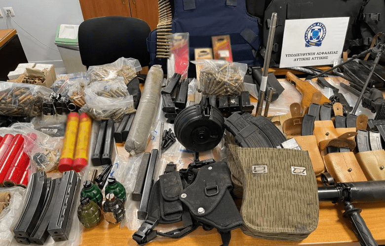 Πλήθος εκρηκτικών μηχανισμών και πυρομαχικών, πολεμικό υλικό και εξαρτήματα, φωτοβολίδες καθώς και όπλο εντοπίστηκαν χθες το πρωί, Παρασκευή 11 Οκτωβρίου, σε σπίτι στην περιοχή των Αχαρνών.