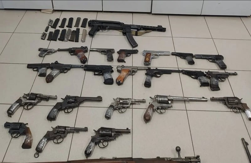 • διάφορα εξαρτήματα οπλισμού, ακαριαίο πυραγωγό σχοινίο, δύο σπρέι πιπεριού, 20 φυσίγγια κρότου, 179 πακέτα αφορολόγητων τσιγάρων και ένα παλαιό νόμισμα.