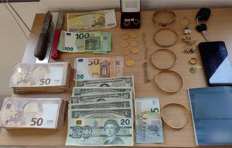 -το χρηματικό ποσό των 8.105 ευρώ, 20 δολάρια Καναδά, 130 δολάρια ΗΠΑ, 7 χρυσές λίρες, 2 μαχαίρια, κινητό και ένα Ι.Χ.Ε. αυτοκίνητο ως μέσο τέλεσης των αξιόποινων πράξεων.