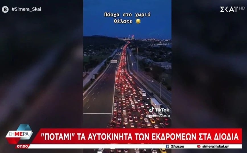 Αδιάψευστος μάρτυρας των χιλιάδων οχημάτων που βγήκαν από την πρωτεύουσα ήταν το χθεσινό βίντεο που τραβήχτηκε από drone και ανέβηκε στο TikTok, στο οποίο φαίνονται τα ακινητοποιημένα οχήματα στα διόδια.