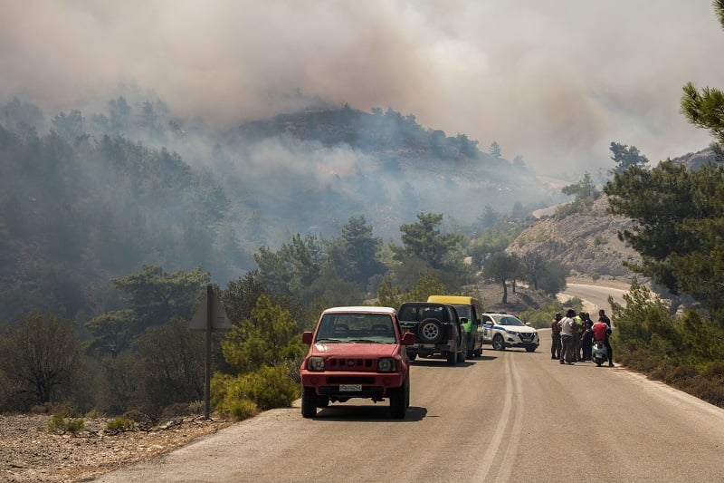 Λίγα λεπτά αργότερα το 112 καλούσε και τους κατοίκους του Γενναδίου να εκκενώσουν και να μετακινηθούν προς Λίνδο.-