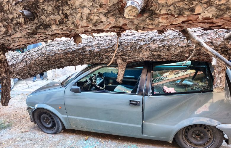 Μεγάλο δένδρο έπεσε στην περιοχή της Χαριλάου καταπλακώνοντας δύο σταθμευμένα αυτοκίνητα. Το περιστατικό καταγράφηκε γύρω στη 1.30 το μεσημέρι στη οδό Κωνσταντίνου Καραθεοδωρή, ενώ στο σημείο κλήθηκε η Πυροσβεστική για να απομακρύνει τον κορμό.