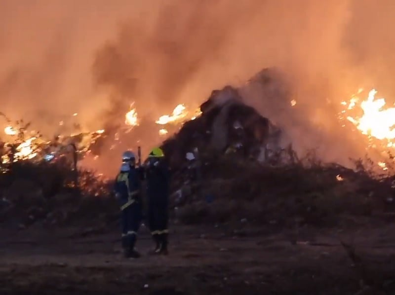 Φόβοι ότι η φωτιά θα καίει για μέρες εξαιτίας των υλικών – Επιχειρούν πυροσβεστικές δυνάμεις απ’ όλη τη Θεσσαλία και τη Λαμία
