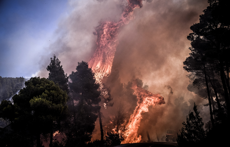 Για το έργο της κατάσβεσής της επιχειρούν επίγειες και εναέριες δυνάμεις της Πυροσβεστικής.
