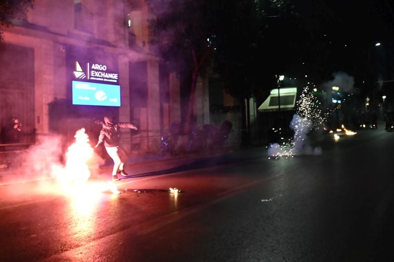 Ειδικότερα, σύμφωνα με την ΕΛΑΣ, μετά το τέλος των ομιλιών που πραγματοποιήθηκαν και ενώ είχε αρχίσει η σταδιακή αποχώρηση των διαδηλωτών, ομάδα ατόμων στην κάτω πλευρά της Πλατείας Συντάγματος και συγκεκριμένα στην οδό Φιλλελήνων και στην οδό Μητροπόλεως έβαλαν φωτιές σε κάδους σκουπιδιών και εκτόξευσαν βόμβες μολότοφ, πέτρες και φωτοβολίδες εναντίον αστυνομικών δυνάμεων, που απάντησαν με χρήση χημικών, μετέδωσε το ΑΠΕ ΜΠΕ.