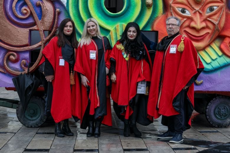 Η συνεχής βροχή δεν πτόησε τους καρναβαλιστές και οι εκδηλώσεις ξεκίνησαν σήμερα το μεσημέρι με την παράδοση του καρναβαλικού λαβάρου στο δήμαρχο Πατρέων Κώστα Πελετίδη από καρναβαλιστές, την Πρόεδρο και μέλη του Δ.Σ της κοινωφελούς επιχείρησης του δήμου «Καρναβάλι Πάτρας», της γνωμοδοτικής επιτροπής και της τελάλισσας του Πατρινού Καρναβαλιού.