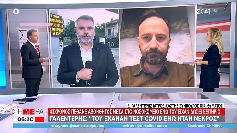 «Δημιουργεί ακόμη εντύπωση ότι ενώ αναφέρεται ότι δεν έχει διενεργηθεί τεστ Covid όσο ήταν εν ζωή, το τεστ το κάνανε αφού κατέληξε. Θέλω να καταλάβω ποιο ήταν το κίνητρο να κάνουν σε έναν νεκρό άνθρωπο τεστ Covid», είπε ακόμη ο κ. Γαλεντέρης στον ΣΚΑΪ.