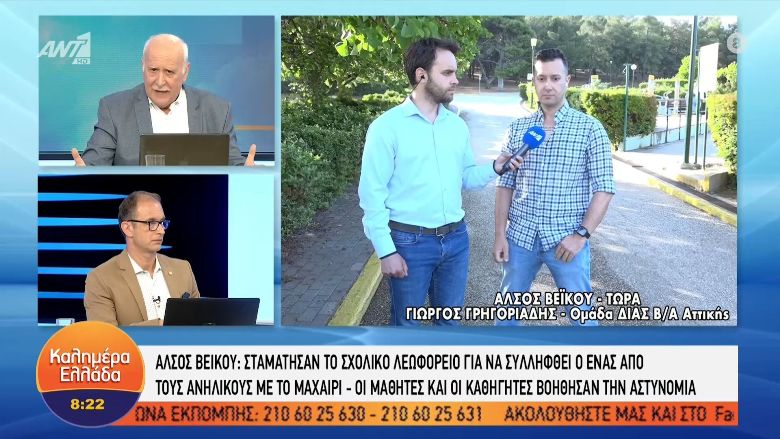 Για το περιστατικό μίλησε στον ΑΝΤ1 ο Γιώργος Γρηγοριάδης, αστυνομικός της Ομάδας ΔΙΑΣ Βορειοανατολικής Αττικής και εξήγησε ότι το σήμα που έλαβαν ήταν για εξαφανισμένο ανήλικο μέσα στο πάρκο. Αφού έφτασαν οι αστυνομικοί στο σημείο διαπίστωσαν το περιστατικό με τη συμπλοκή των μαθητών, όπου βγήκαν μαχαίρια, όπως ενημερώθηκαν.