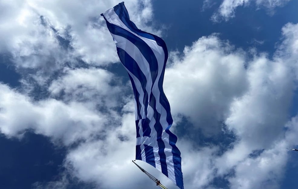 Στον ουρανό του Ηρακλείου της Κρήτης υψώθηκε και φέτος μία γιγαντιαίων διαστάσεων ελληνική σημαία με αφορμή την επέτειο της 28ης Οκτωβρίου.