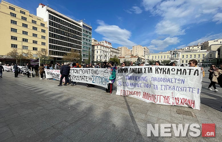 Συγκέντρωση αλληλεγγύης στη 12χρονη που έπεσε θύμα βιασμού και μαστροπείας στον Κολωνό, πραγματοποιούν φορείς και πολίτες στην πλατεία Κοτζιά κατά τη διάρκεια του Δημοτικού Συμβουλίου της Αθήνας.