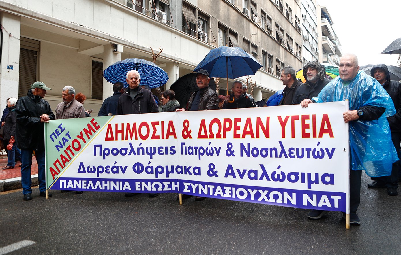 Οι συνεργαζόμενες συνταξιουχικές οργανώσεις πραγματοποιούν σήμερα συγκέντρωση διαμαρτυρίας στην πλατεία Εθνικής Αντίστασης και πορεία προς το υπουργείο Υγείας. Ανακοίνωσαν ότι, το επόμενο χρονικό διάστημα, προγραμματίζουν συγκεντρώσεις και πορείες σε όλες τις Υγειονομικές Περιφέρειες της χώρας.