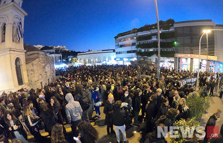 Συγκέντρωση διαμαρτυρίας και πορεία προς το Α.Τ. της Ομόνοιας για τον καταγγελλόμενο βιασμό 19χρονης από δύο αστυνομικούς πραγματοποιήθηκε το απόγευμα της Παρασκευής.