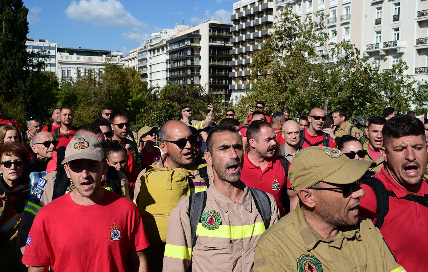 Συγκέντρωση στην πλατεία Συντάγματος, έξω από τη Βουλή πραγματοποιούν αυτή την ώρα εποχικοί πυροσβέστες, καταγγέλλοντας την επίθεση που δέχθηκαν από τα ΜΑΤ την ώρα που διεκδικούσαν τη μονιμοποίηση τους.
