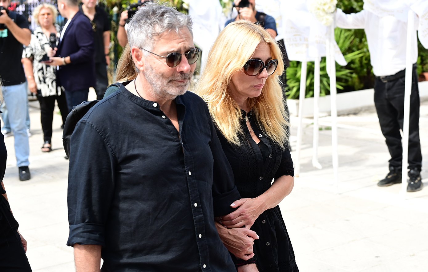«Στον μπαμπάκα μου. Η κόρη σου, Μπούμπα», αναφέρεται στο στεφάνι της κόρης του Σμαράγδας Καρύδη.