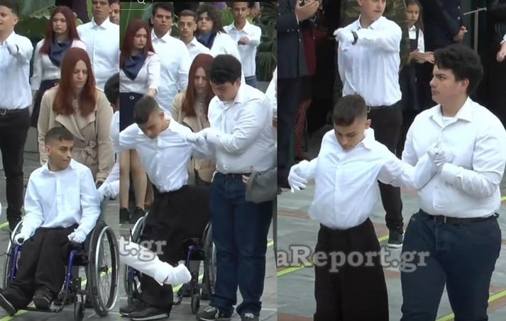 Συγκλόνισε μαθητής Ειδικού Γυμνασίου που σηκώθηκε από το αναπηρικό αμαξίδιο και παρέλασε όρθιος στη Λαμία