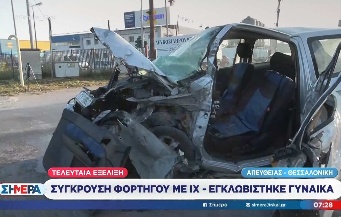 Μια 45 ετών γυναίκα που οδηγούσε το ΙΧ εγκλωβίστηκε μέσα στο όχημα της και χρειάστηκε η επέμβαση της Πυροσβεστικής ώστε να βγει από την άμορφη μάζα σιδερικών.