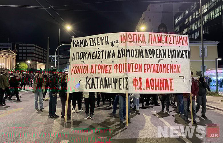 Συνεχίζονται οι αντιδράσεις των φοιτητών για το επικείμενο νομοσχέδιο που αφορά την ίδρυση στην Ελλάδα Μη Κρατικών Πανεπιστημίων. Αυτή την ώρα γίνεται στην Αθήνα συλλαλητήριο από φοιτητικές οργανώσεις που εναντιώνονται σε αυτό το ενδεχόμενο.