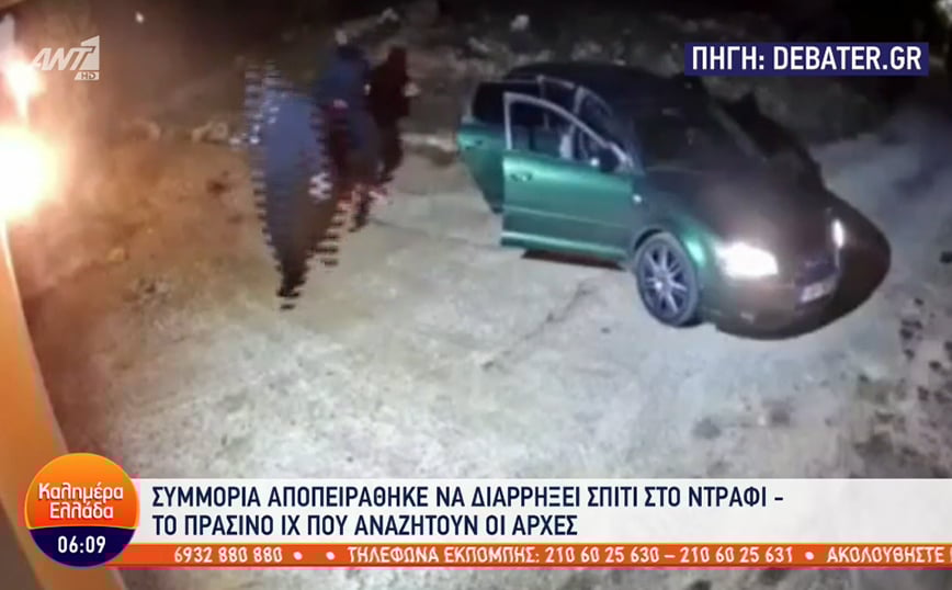 Η δράση των δραστών που κρατάει τέσσερα λεπτά.έχει καταγραφεί από κάμερα ασφαλείας και δείχνει ένα πράσινο αμάξι να περνάει το στενό αρχικά που βρίσκεται το σπίτι, αλλά μπερδεύονται, και στη συνέχεια κάνουν όπισθεν ώστε να μπουν.