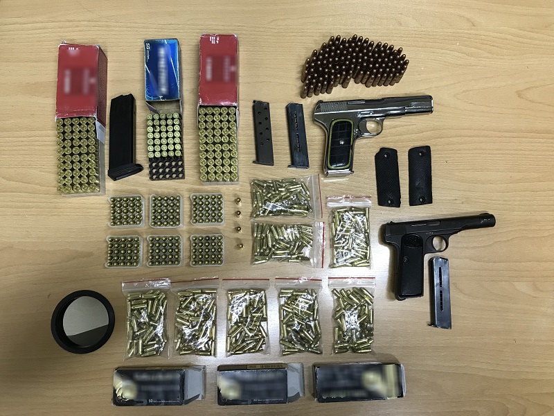 Η σύλληψή του έγινε στο πλαίσιο έρευνας σε σπίτια του κατηγορούμενου σε περιοχές των Δήμων Αστερουσίων και Ηρακλείου, κατά τη διάρκεια της οποίας βρέθηκαν και κατασχέθηκαν δύο πιστόλια, πέντε γεμιστήρες, 835 φυσίγγια διάφορων τύπων και διαμετρημάτων, αλλά και δύο ξύλινες λαβές πυροβόλου όπλου-πιστολιού, χειροκίνητη συσκευή αναγόμωσης, ξύλινος υποφυλακτήρας κυνηγετικού όπλου και τρεις ψήκτρες καθαρισμού όπλων.