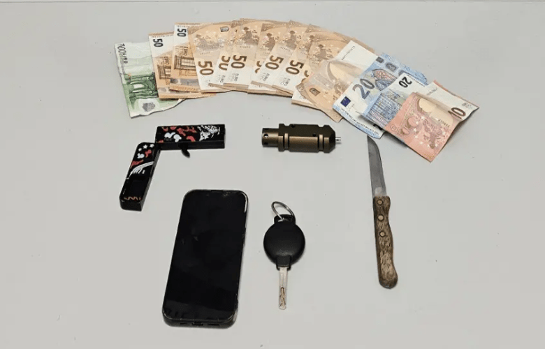 • μαχαίρι και πλαστικό γάντι που είχαν χρησιμοποιηθεί κατά τη διάπραξη της ληστείας στο πρακτορείο τυχερών παιχνιδιών,