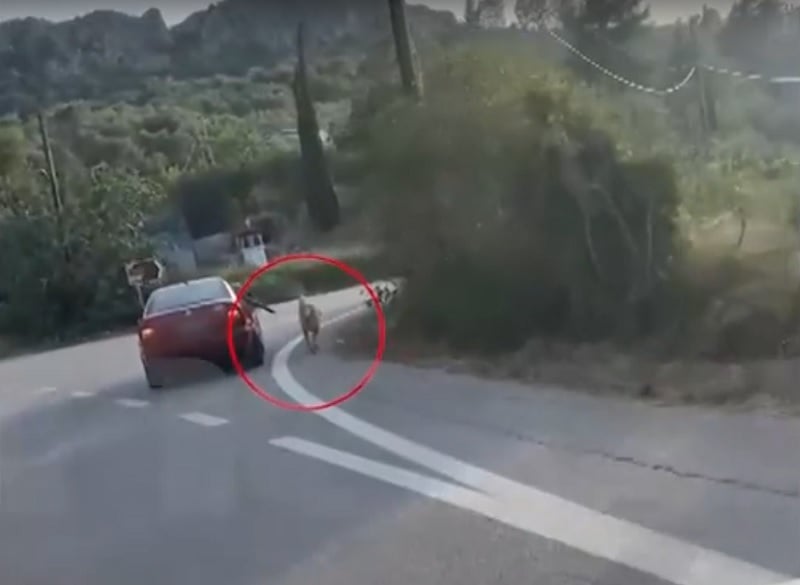Όπως φαίνεται σε βίντεο που προέβαλε η εκπομπήLive News, το αυτοκίνητο βρίσκεται εν κινήσει, με τον συνοδηγό να κρατά το λουρί του σκύλου, ο οποίος έτρεχε παράλληλα έξω από το όχημα. Αυτόπτης μάρτυρας ο οποίος κατέγραψε το βίντεο ντοκουμέντο, ανέφερε πως τους σταμάτησε, για να τους ρωτήσει γιατί το κάνουν αυτό και του απάντησαν «γιατί έτσι μας αρέσει». «Λίγο πριν το Παλαμήδι εντοπίσαμε το αυτοκίνητο αυτό να πηγαίνει μπροστά μας, με τον σκύλο να τον κρατάνε από την δεξιά πλευρά του οχήματος, από την έξω πλευρά, με ένα σχοινί ή με ένα λουρί. Τους προσπέρασα, ώστε να σταματήσω δεξιά και να τους ρωτήσω τι συμβαίνει και γιατί το πηγαίνουν έτσι. Μου απάντησαν ειρωνικά “γιατί έτσι μας αρέσει”. Ήταν μία γυναίκα οδηγός και ο άνδρας συνοδηγός που κρατούσε τον σκύλο, ηλικίας περίπου 50-60», ανέφερε ο αυτόπτης μάρτυρας.