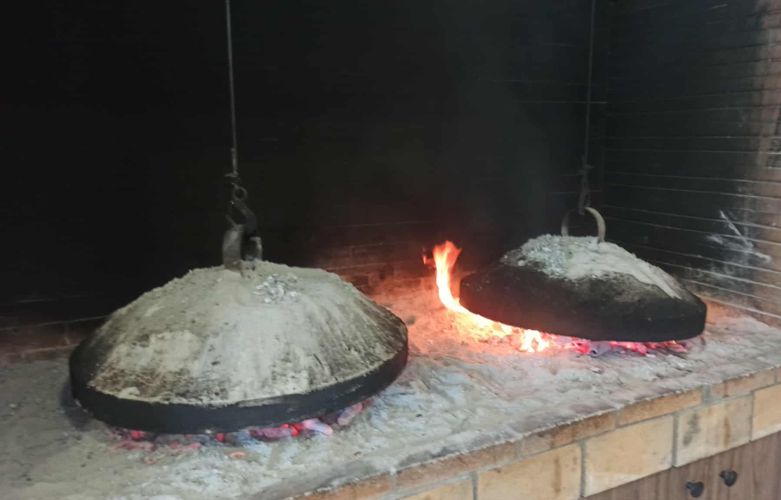 Στο εργαστήρι της Μαρίας υπάρχουν τα δύο σκεύη που μοιάζουν με τεράστιες γάστρες -τα δύο σατς, που έφερε από την Αλβανία, μαζί με δύο παλιές πυροστιές. Βάζει τα ξύλα κάτω από την πυροστιά και τα ανάβει. Πάνω στην πυροστιά βάζει το σατς και το σκεπάζει με βαρύ καπάκι, τόσο βαρύ που χρειάζεται μηχανισμός για να το σηκώσει. Και οι πίτες ψήνονται, όπως ψήνονταν πριν από δεκαετίες στις αυλές και στα χωριά. Το ψήσιμο της πίτας και η μυρωδιά της είναι σαν ένα ταξίδι στον χρόνο. «Τις πίτες τις φτιάχνω ακριβώς όπως τις έφτιαχναν παλιά, γι’ αυτό και το μαγαζί μου το ονόμασα “Πίτα όπως παλιά”», λέει η Μαρία.
