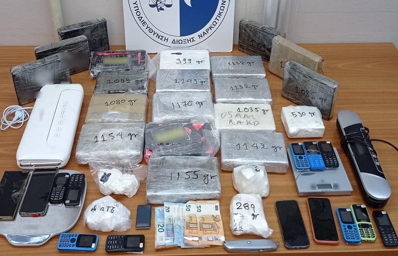 Σύμφωνα με την ΕΛ.ΑΣ., στο πλαίσιο δράσεων για τη σύλληψη εμπόρων-διακινητών ναρκωτικών και κατόπιν διερεύνησης πληροφοριών αναφορικά με τη δράση ατόμων στην διακίνηση μεγάλων ποσοτήτων κοκαΐνης στην ευρύτερη περιοχή της Αττικής, εντοπίστηκαν οι κατηγορούμενοι και πιστοποιήθηκε η εγκληματική τους δράση. Μετά από έρευνα βρέθηκαν στην κατοχή τους και στα σπίτια τους και κατασχέθηκαν 22 κιλά και 843 γραμμ. κοκαΐνης, 0,5 γραμμ. ακατέργαστης κάνναβης, 230 ευρώ και 200 Lek Αλβανίας, 15 κινητά τηλέφωνα, τρεις ηλεκτρονικές ζυγαριές ακριβείας, εξοπλισμός για τη διαδικασία συσκευασίας και τυποποίησης των ναρκωτικών, γεμιστήρας, κάρτες SIM. Κατασχέθηκε επίσης αυτοκίνητο που χρησιμοποιούσαν για τις μεταφορές τους.