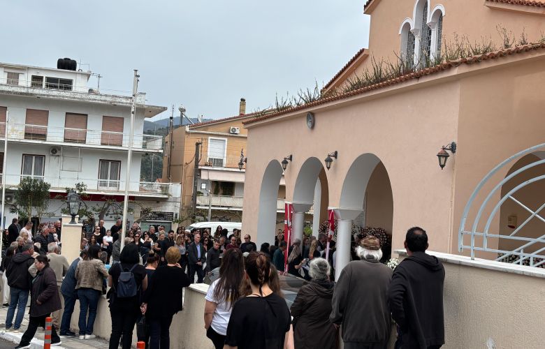Φίλοι και συγγενείς της 19χρονης αποχαιρέτησαν τη Μυρτώ σε κλίμα βαθιάς οδύνης στον Ιερό Ναό Μητροπόλεως Αργοστολίου λίγα μέτρα μακριά από το δικαστικό μέγαρο όπου έγινε η απολογία των τριών κατηγορούμενων.