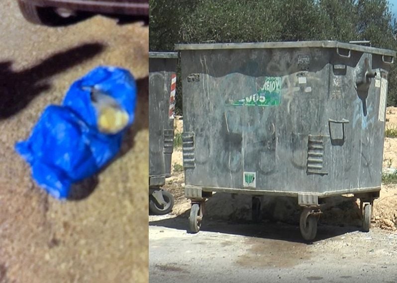 Η κοπέλα αφού γέννησε ολομόναχη στην μπανιέρα του διαμερίσματος που διαμένει με τον σύζυγο της, έβαλε το μικροσκοπικό αγοράκι σε μία σακούλα και καταγράφηκε από κάμερες στις 21.39 να προσέρχεται σε κάδο απορριμμάτων, σε απόσταση περίπου 100 μέτρων από την οικία της και να πετάει μέσα την σακούλα. Κατά το χρόνο που απομακρυνόταν από τους κάδους, έγινε αντιληπτή από τον σύζυγο της, ο οποίος μόλις επέστρεφε από την εργασία του. Παραξενεύτηκε και την ρώτησε τι έκανε έξω βραδιάτικα. Εκείνη του είπε, ότι πετούσε κάποια χρησιμοποιημένα χαρτιά, καθώς είχε πρόβλημα με την έμμηνο ρύση.