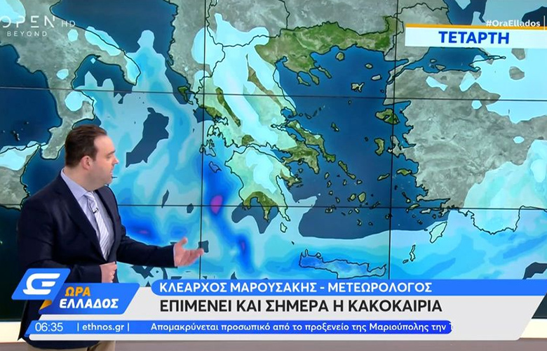Mε κακοκαιρία θα κυλήσει και η σημερινή ημέρα στην χώρα, σύμφωνα με τον μετεωρολόγο Κλέαρχο Μαρουσάκη.