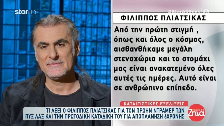 Τη στενοχώρια του για όσα είδαν το φως της δημοσιότητας που αφορούν τον πρώην ντράμερ των Πυξ Λαξ που κατηγορείται για αποπλάνηση 6χρονου κοριτσιού (16 ετών σήμερα) εξέφρασε ο Φίλιππος Πλιάτσικας.