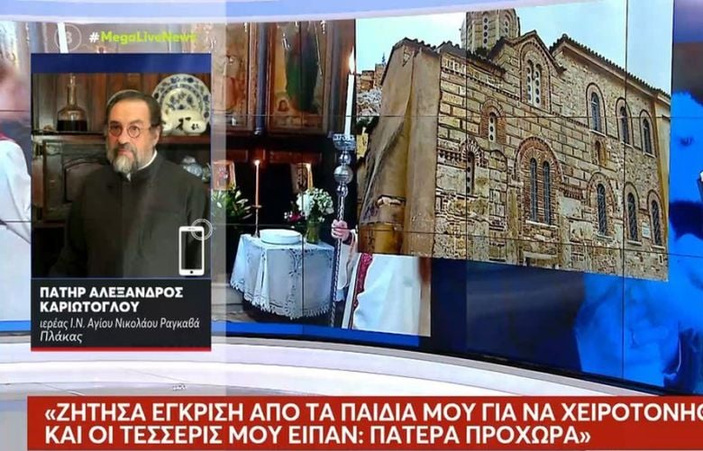 Ο λόγος για τον πρωτοπρεσβύτερο Αλέξανδρο Καρυότογλου, που κλήθηκε άρον –άρον στην Αρχιεπισκοπή για να απολογηθεί για τα όσα συνέβησαν την Κυριακή της Πεντηκοστής στην Ενορία Αγίου Νικολάου Ραγκαβά.