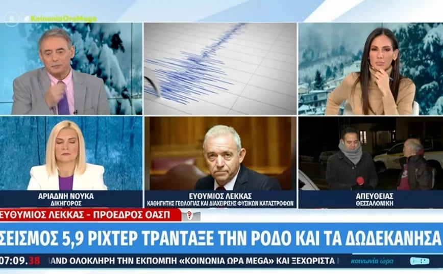 Καθησυχαστικός φάνηκε ο καθηγητής Δυναμικής Τεκτονικής και Εφαρμοσμένης Γεωλογίας Ευθύμης Λέκκας μετά τον σεισμό των 5,9 Ρίχτερ που έγινε χθες στη Ρόδο. Η δόνηση έγινε ιδιαίτερα αισθητή σε Κάρπαθο και Κρήτη.