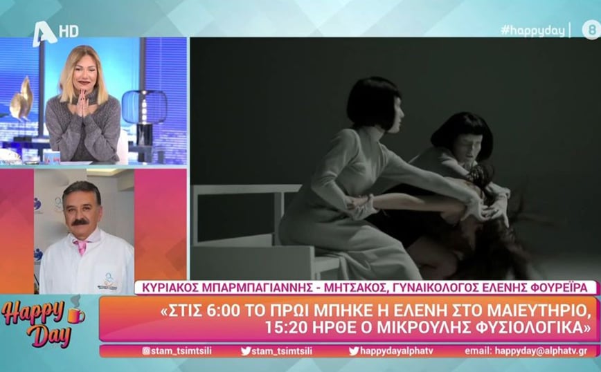 Ο γυναικολόγος της τραγουδίστριας μίλησε στην εκπομπή «Happy Day», δίνοντας λεπτομέρειες για τον τοκετό, το μωρό, αλλά και τη δύναμη που επέδειξε η Ελένη Φουρέιρα, η οποία είχε στο πλευρό της τον Αλμπέρτο Μποτία, σύντροφο και πατέρα του παιδιού.